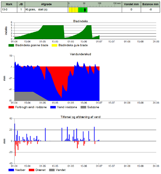Figur 1 Forventet vandbalance den 2. juli i slætgræsmark (Kilde: MarkOnline, SEGES)