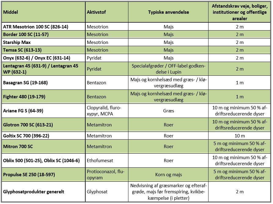 mere i artiklen: " Vær opmærksom på plantebeskyttelsesmidlernes afstandskrav til beboelse, veje mv.").
