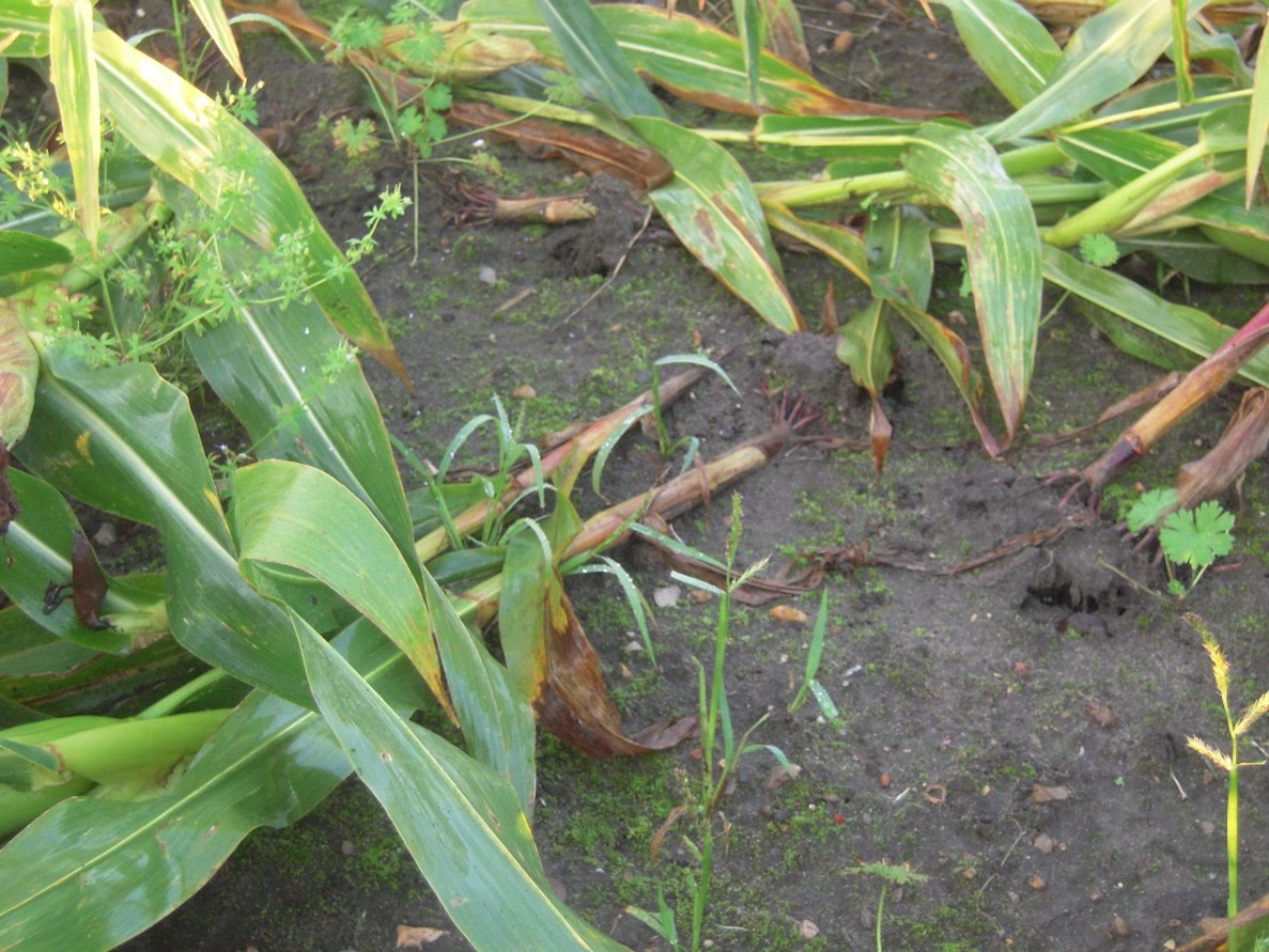 Billede 1 Væltede majsplanter som følge af root lodging (Foto: Thomas Harbo, SAGRO)