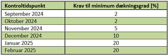 Tabel 3 Gældende for majs, efterår 2024. Krav til efterafgrødernes