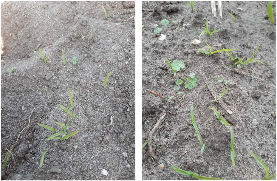 Billede 2 og 3 Hanespore 2-bladstadie (tv) og 3-bladstadie (th) (Foto Peter Siebert)