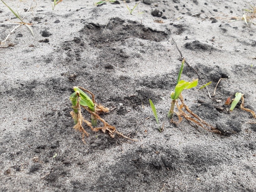 Billede 1 Frosten var hård ved majsen, men planterne skyder nu igen (Foto: Thomas Harbo, SAGRO)