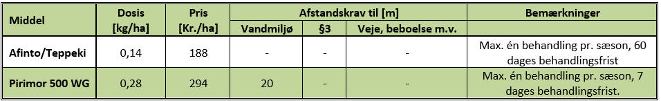 Tabel 2 Bekæmpelse af bede- og ferskenbladlus i foderroer