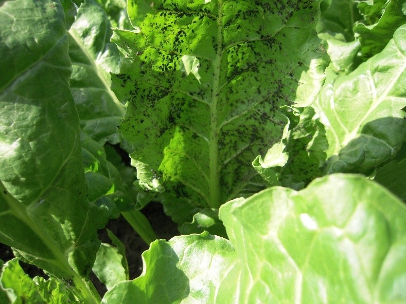 Billede 1 Koloni af bedebladlus. De findes på enkelte planter, men slet ikke i nærheden af bekæmpelsestærsklen. (Foto: Thomas Harbo, SAGRO)