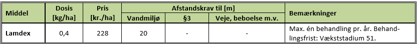 Tabel 1 Bekæmpelse af bladlus og agerugler i fodermajs