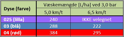 Tabel 2 Sprøjteteknik mod svampe (og evt. bladlus) i majs.