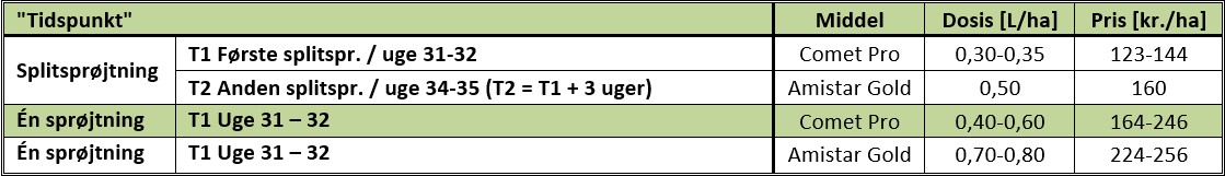 Tabel 4 Bekæmpelsesstrategi for bladsvampe i foderroer.