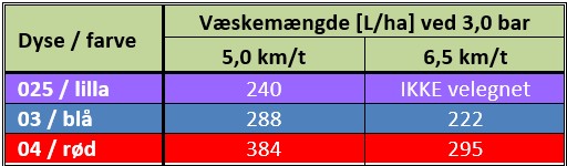 Tabel 5 Sprøjteteknik i foderroer, svampebekæmpelse og