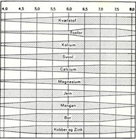 Figur 3 Tilgængelighed af jordens næringsstoffer er afhængig af pH.