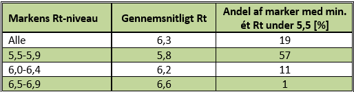 Tabel 3 Markens Rt-niveau, gennemsnitligt Rt og andel af marker med