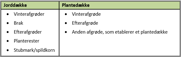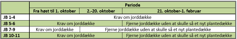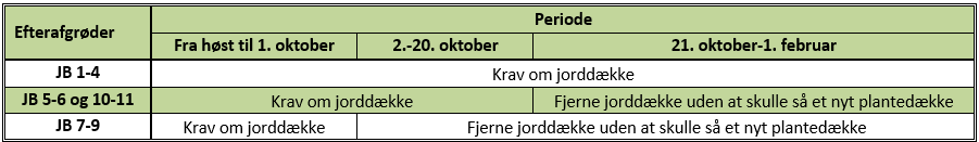 Tabel 7 Periode for krav om jorddække, efterafgrøder