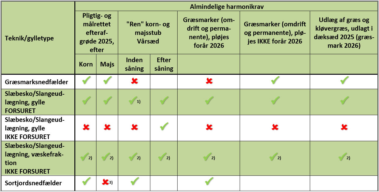 Tabel 3 Almindelige harmonikrav, udbringningsteknik ved flydende husdyrgødning i februar 2026.