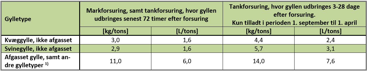 *) Se dog også tabel 3 vedr. udbringningsteknik.