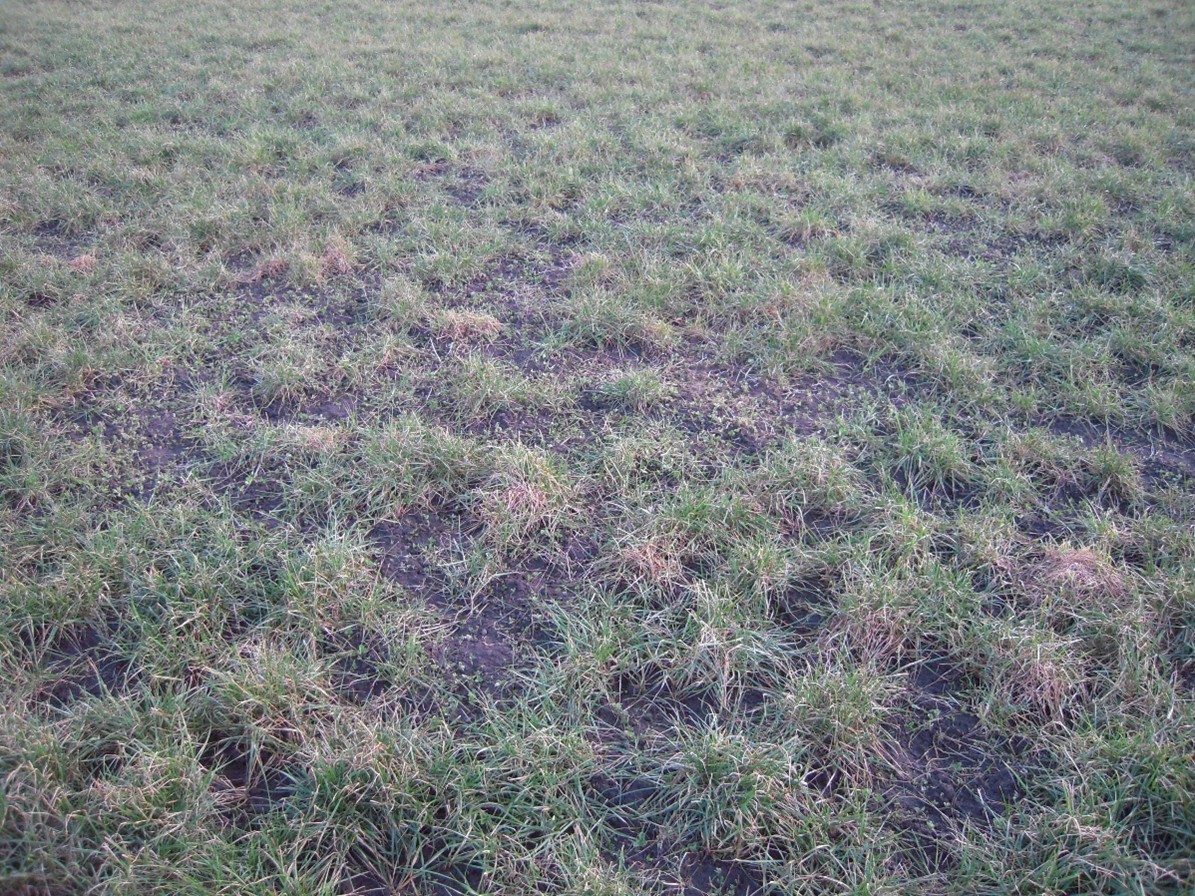 Såfremt afgrøden er rent græs uden kløver, må pletter på størrelse med et fodaftryk eller en lille tallerken med tynd plantebestand – eller helt uden planter – max. udgøre 5 % af det samlede areal i marken. Er der hvidkløver i marken, må dårlige pletter max. udgøre 10 % på nuværende tidspunkt.