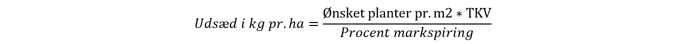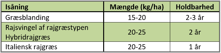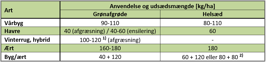 1) Lavest udsædsmængde anvendes, hvor der etableres kløvergræs, mens den højere udsædsmængde anvendes, hvor der isås italiensk rajgræs.