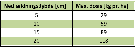 Tabel 6 Flydende ammoniak, krav til nedfældningsdybde og dosering.