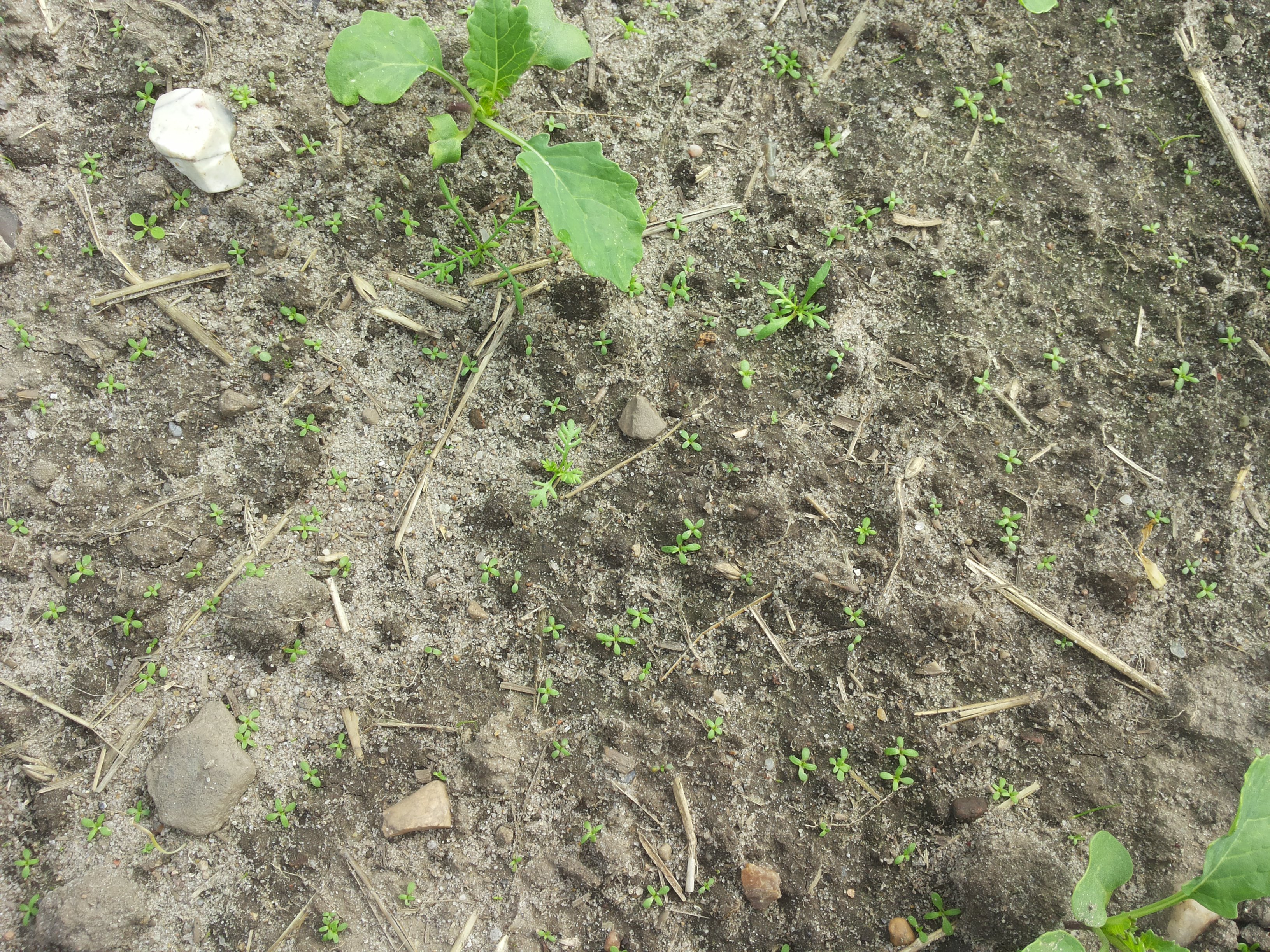 På billede 1 ses en kraftig bestand af kamiller i forskellige størrelser. Rapsen er kun i stadie 2-3, og der må derfor kun anvendes 0,25 l Belkar. En løsning kunne derfor være at sprøjte nu med 0,25 l Belkar og følge op med en sprøjtning igen om 3 uger. Da det ser ud til, at der stort set kun er kamiller, vil det også være en relevant løsning at vente til rapsen har 6 løvblade, og alle kamiller er fremspiret og så anvende 0,4-0,5 l Belkar.