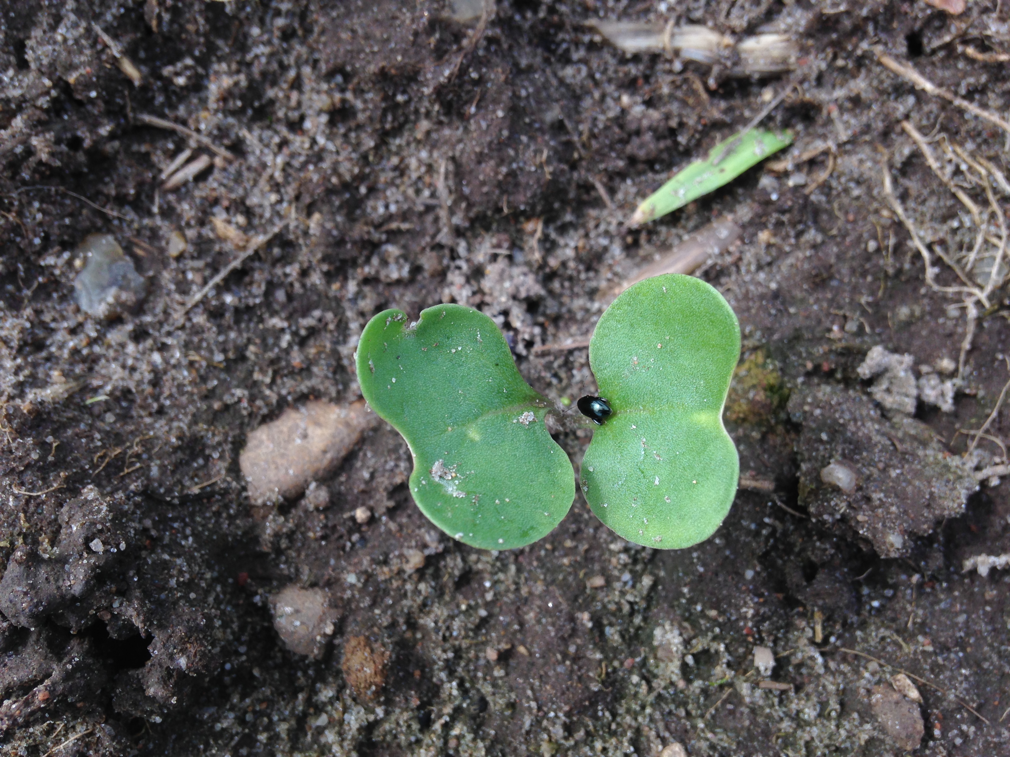 Der er fortsat ikke mange meldinger om gnav af rapsjordloppebillen (skudhuller i bladene), men hold løbende øje med marken, da skadedyr har det med pludselig at dukke og kan på kort tid lave alvorlig skade. Vær mest opmærksom på sentsået vinterraps, hvor bladmassen er lille. Billedet viser en nyetableret vinterraps uden gnav, men med den voksne bille. Hvis det er en aktuel situation i marken, skal der absolut ikke ske bekæmpelse. Se bemærkninger om risiko for resistensudvikling- TILVÆKST nr. 20.