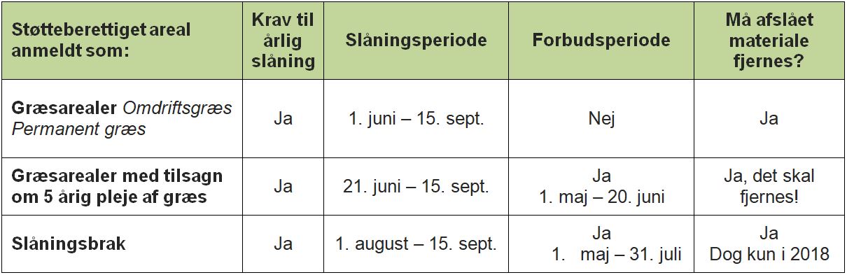 I grundbetalingsordningen skal aktivitetskravet på græsarealer overholdes med mindst én årlig slåning, for at arealer med græs er støtteberettigede.