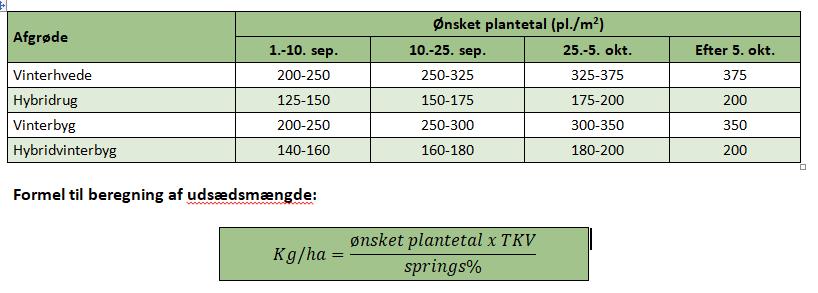 Det er vigtig at kende tusindkornsvægten, da den varierer en del i år. Pas på med såning af overgemt såsæd – vi har desværre hørt om meget lave spireprocenter af især vinterrug. Så aldrig overgemt såsæd uden at kende spireprocenten. Se i øvrigt afsnit om etablering af vintersæd i TILVÆKST nr. 19