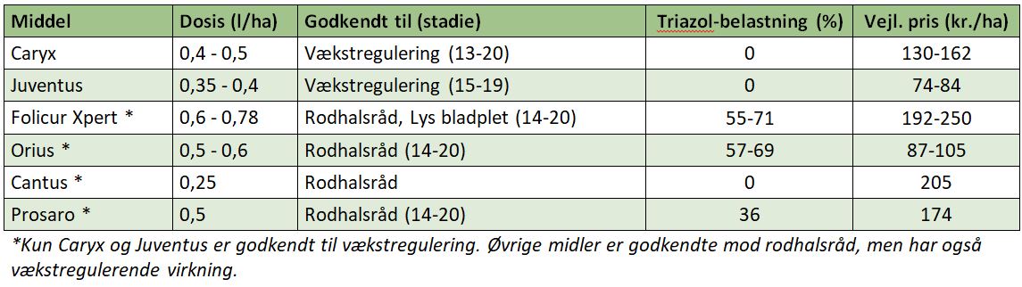 Tabel 1 Midler til vækstregulering og svampebekæmpelse i vinterraps