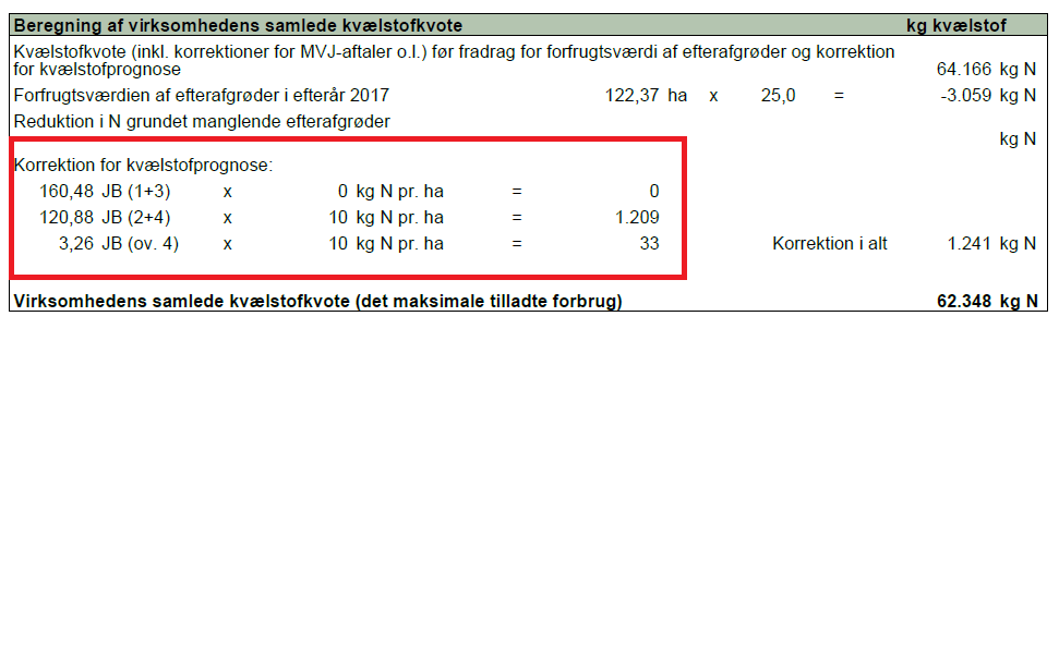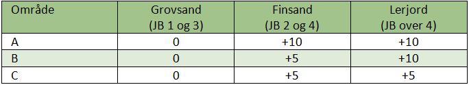 Tabel 2 Korrektion af kvælstofkvoten afhængig af jordtype og område (kg N pr. ha).