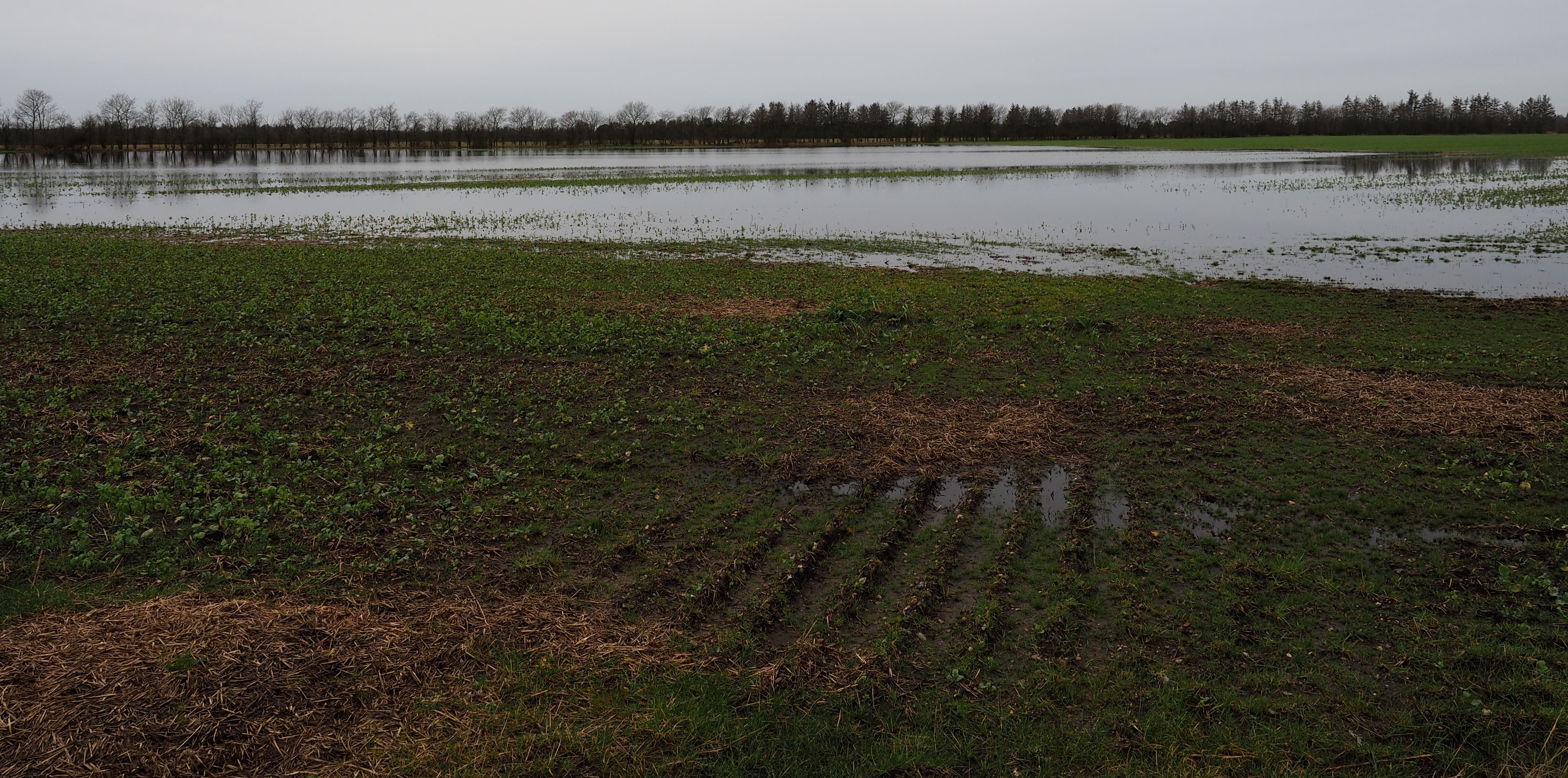Billede 1 En af de mange våde marker, der præger landskabet. Her er der endnu ikke andet at gøre end at afvente bedre vejr (foto: Jens Nygaard, SAGRO).