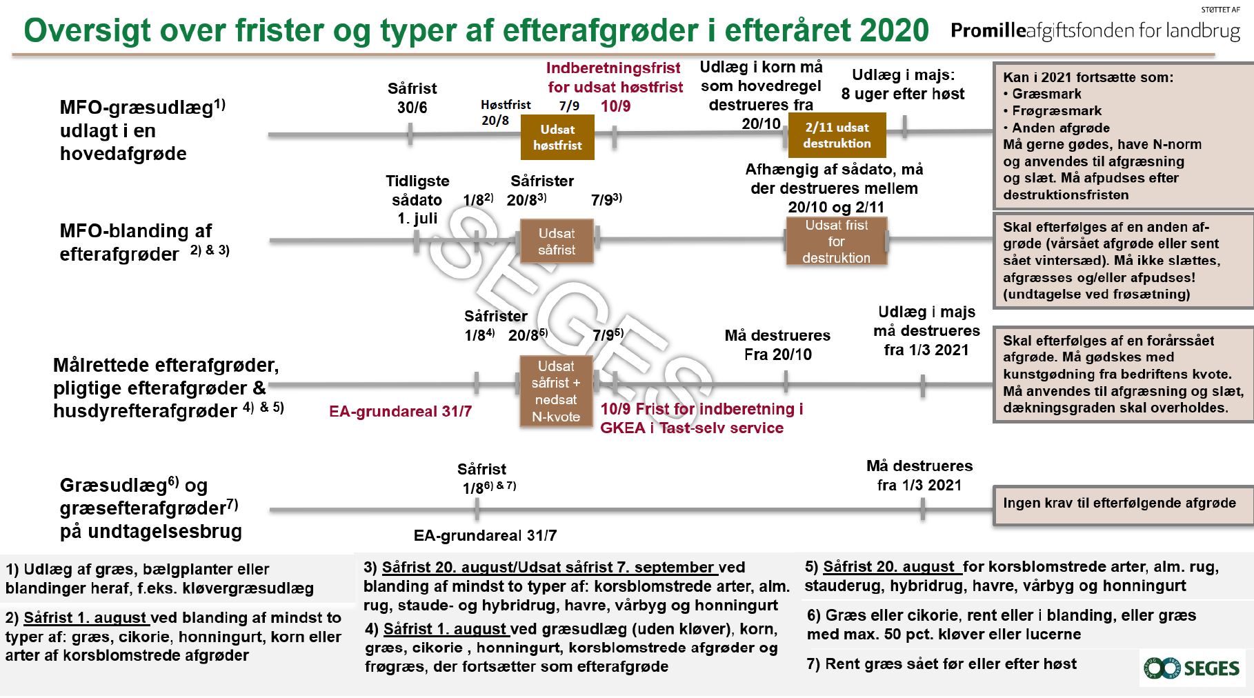 Figur 1 Oversigt over frister og typer af efterafgrøder i efteråret 2020. Figuren er modificeret efter SEGESs version.