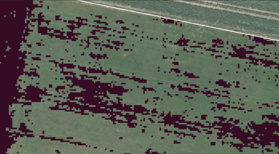 I disse dage tager vi en masse drone billeder til brug i Thistle tool. Her inden kornet høstes mens tidsler og kvik stadig er grønne er de nemme at se på dronebillederne (se billede 3). Med Thistle tool i Cropmanager kan vi lave kort som kan bruges til pletsprøjtning senere (se billede 4). Eksempelvis med MCPA i næste års afgrøde, hvis det primært er tidsler der skal bekæmpes, er der også en del kvik skal der vælges et tidspunkt, hvor glyphosat kan benyttes. Ved at lave en præcisionskort til pletsprøjtningen spares der på sprøjtemidlet, hvor meget afhænger af hvor små sektioner sprøjten kan åbne af gangen samt selvfølgelig hvor meget ukrudt der er i marken. I en mark med en del tidsler hvor sprøjten kunne styre hver enkelt dyse er der opnået besparelse på over 80 % sprøjtemiddel.