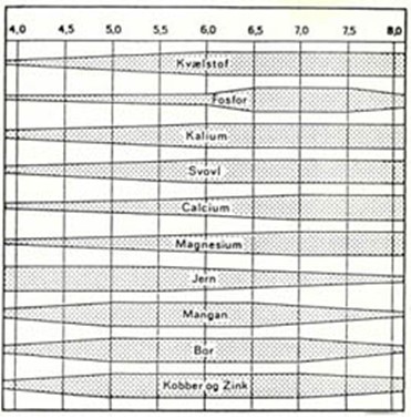 Figur 1 Tilgængelighed af jordens næringsstoffer er afhængig af pH