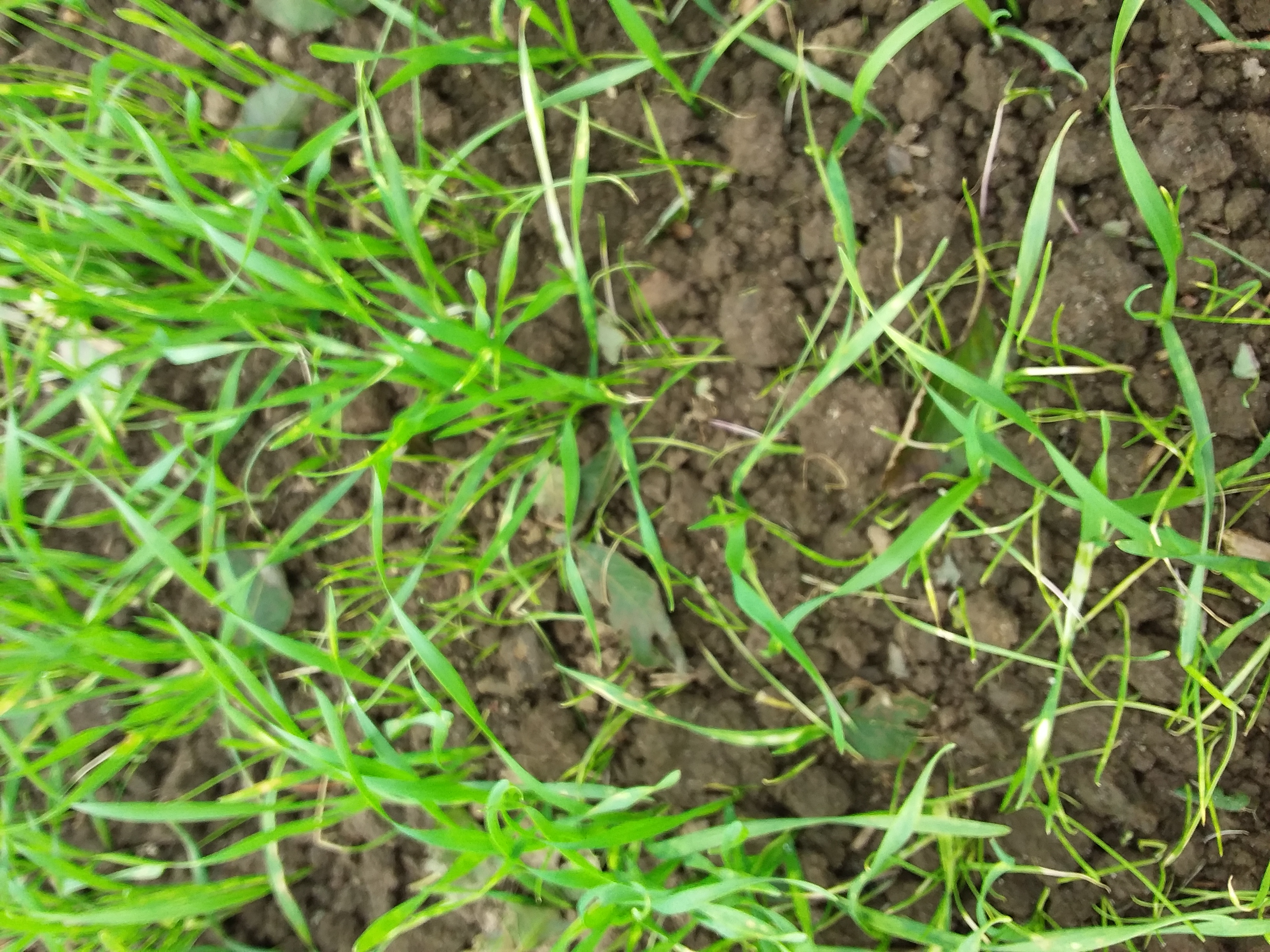 Billede 3 italiensk rajgræs fremspiret i tidlig sået hvede inden 7/9. Marken er set den 27-9. Her er græsbestanden så tæt, at der vil være behov for efterårsbekæmpelse, evt. med Atlantis. Foto: Michael Fleng, SAGRO.