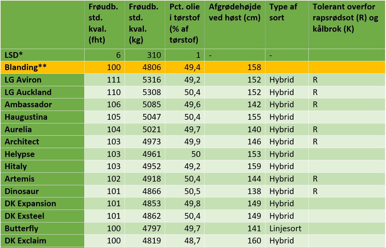 Næste års vinterraps er selvfølgelig allerede sået, men hvis du er nysgerrig på hvordan din sort har klaret sig i år, så kan du her se resultaterne fra årets landsforsøg. De to hybridsorter LG Avrion og LG Auckland ligger i top, og lå også i top i gennemgangen vi lavede i sommers i TILVÆKST Salgsafgrøder nr. 16.
