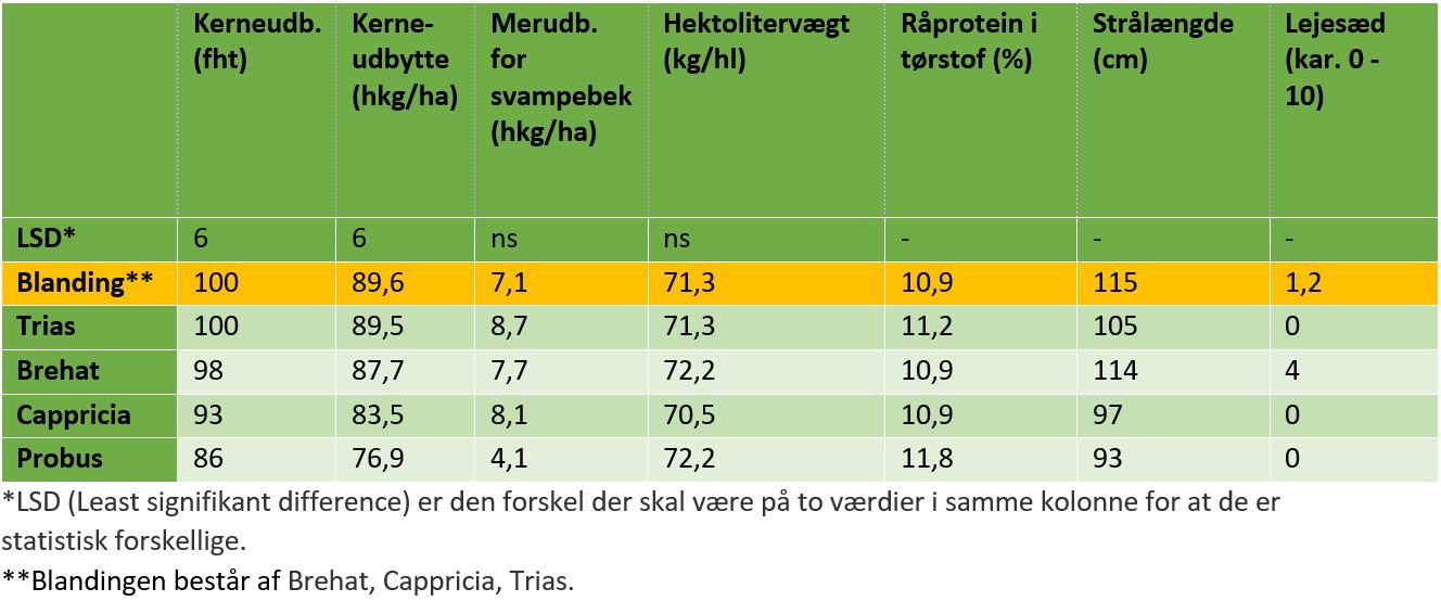 Sortudviklingen på triticale er begrænset på grund af det lille marked for triticale. Der opnås samme udbytte i blandingen som den bedste sort, Trias.