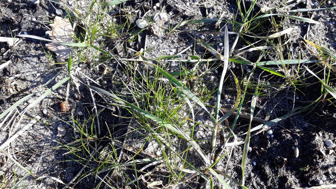 Billede 1 Behandling af hvede med Cossack OD (0,45 l/ha) og DFF (0,08) har virket fint på (ubehandlet) enårig rapgræs og stedmoder ved behandlingen d. 8.-2. 2020 selv om der efterfølgende blev køligt, med nattefrost. (Foto: Birgit Vestergård, SAGRO)