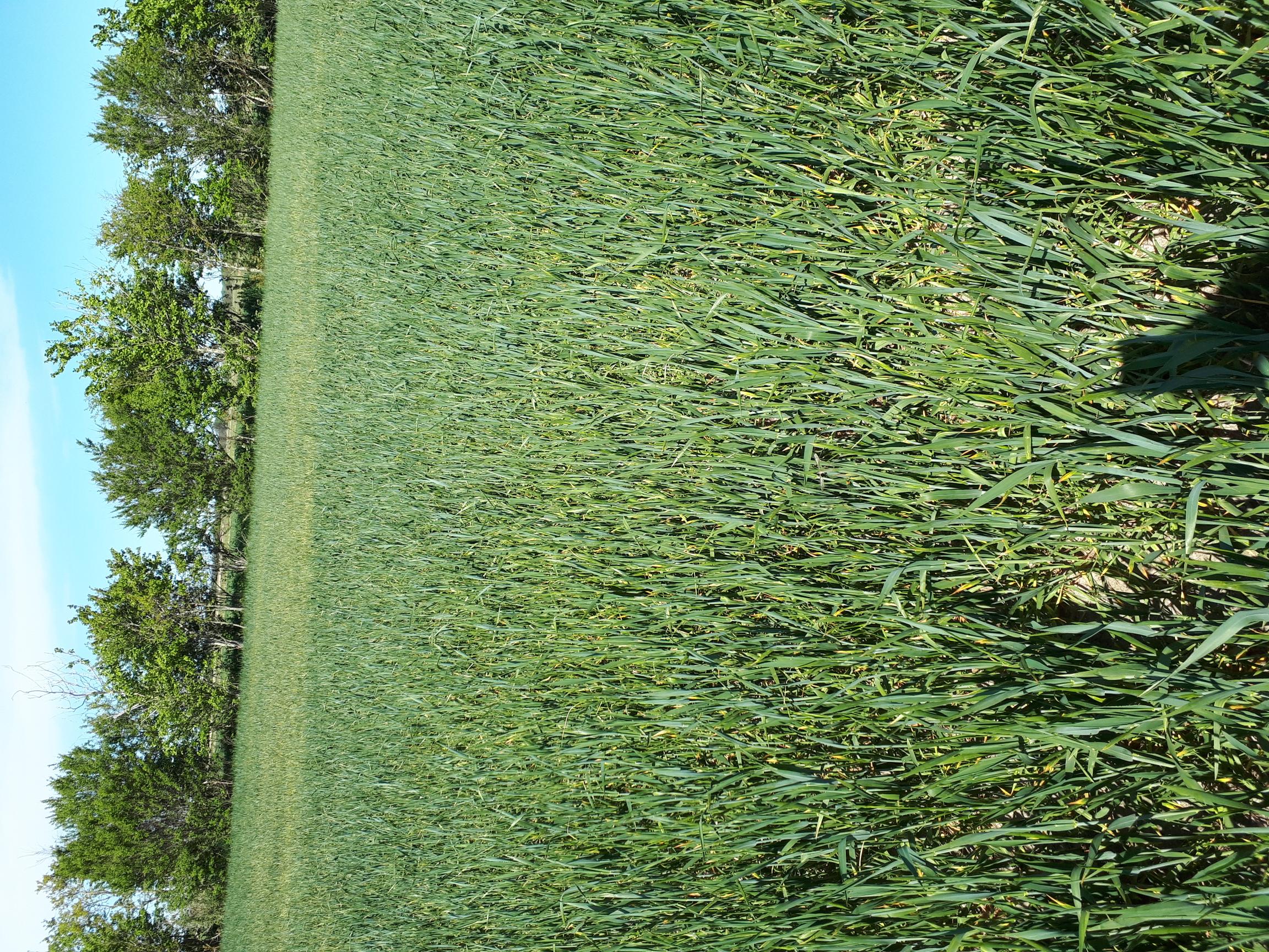 Billede 2 En gulrust ”rede” i triticale, hvorfra der sker spredning af gulrustsporer til den øvrige mark.