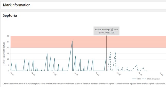 Figur 1 CropManager har en fin graf der viser udviklingen af risiko for Septoria i dine marker.