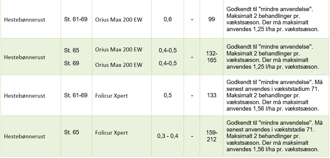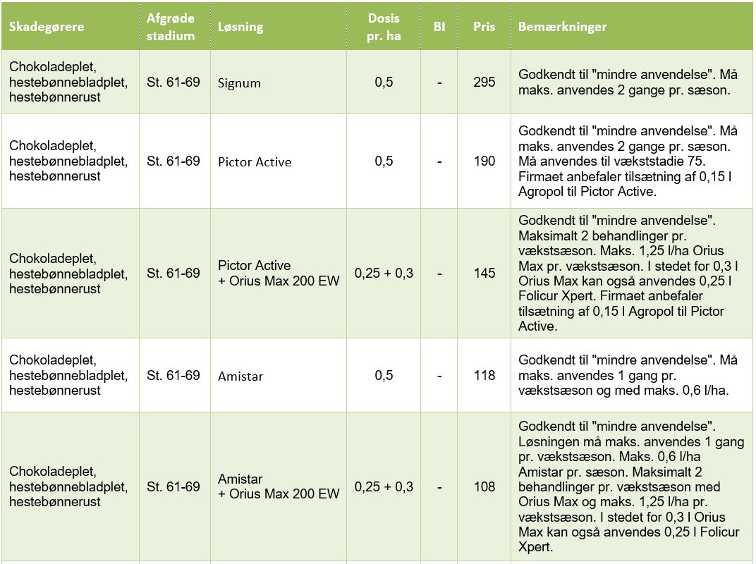 Tabel 1 Behandlingsmuligheder mod svamp i hestebønner.