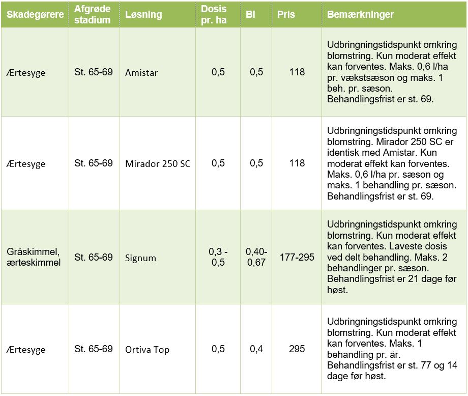 Tabel 2 Løsningsforslag til svampebekæmpelse i ærter.