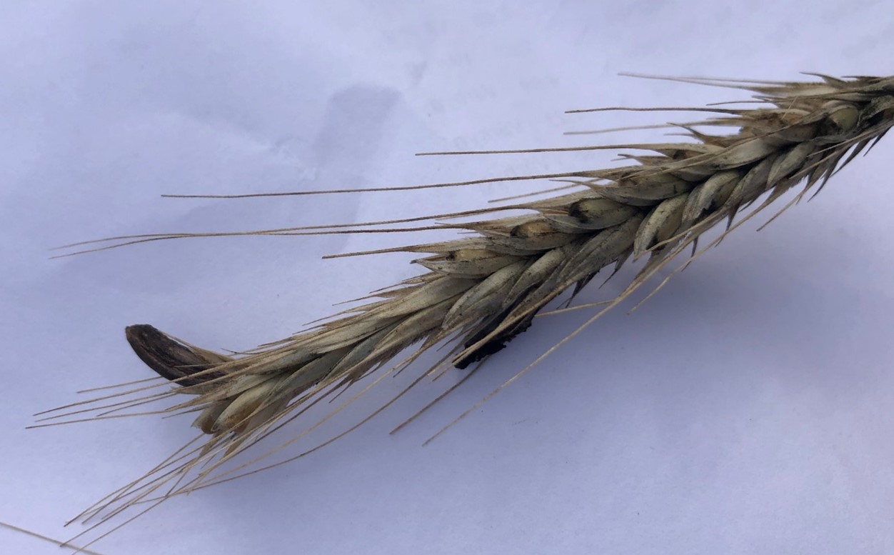 Billede 2 Eksempel på meldrøjer i rug. De store, sorte, forvoksede kerner er lette at kende (Foto: Susanne Frydendal Nielsen, SAGRO).