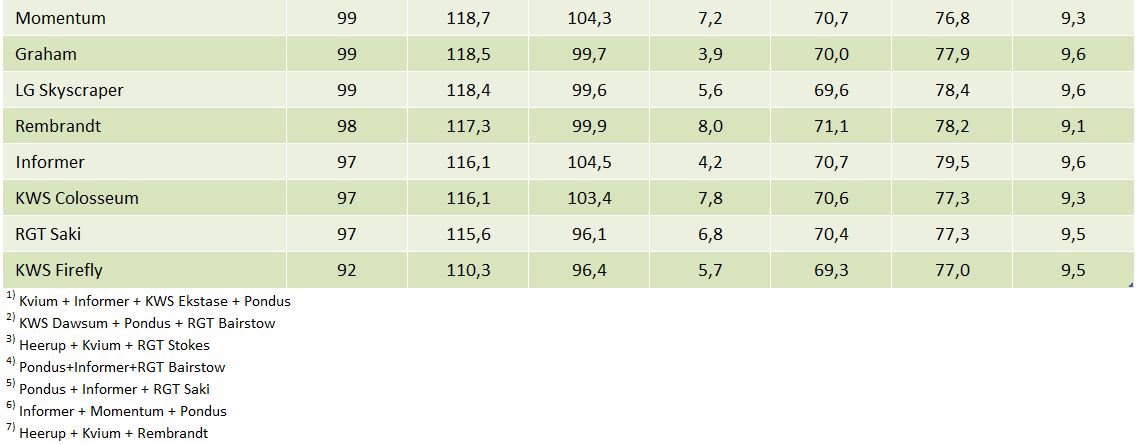 Tidligere på året skrev vi i TILVÆKST Salgsafgrøder nr. 16 om de sorter, der var i handelen til dette efterår. Nu er resultatet af årets forsøg gjort op. Se tabel 2. Pondus, RGT Stokes og Kvium er de tre bedste enkelt sorter i år, men mange sorter har klaret sig på samme niveau, indenfor 5-6 hkg/ha. Sortsblandingerne har gjort det godt igen i år, med HK-hvedeMIX 2022 helt i top, men igen ligger sortsblandingerne på samme niveau, inden for 3 hkg/ha.