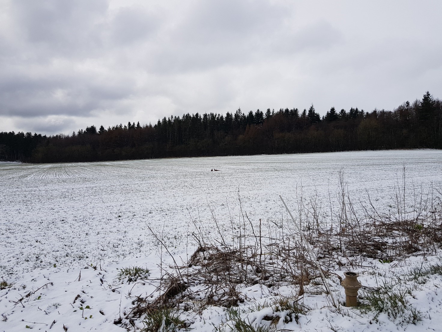 Billede 1 Fasaner i sneen (Foto: Henrik Otto Clement, SAGRO 30. marts 2022).