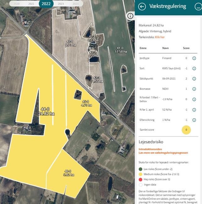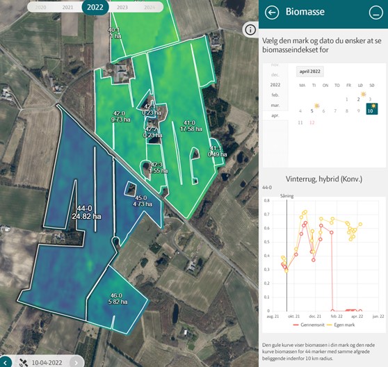 På CropManager.dk kan man følge udviklingen i sin mark i forhold til andre i nærområdet sådan: